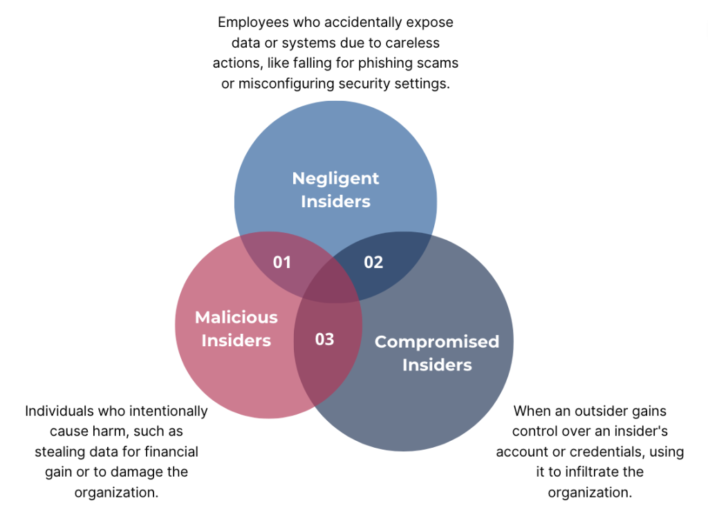 - Malicious insiders account for 23% of incidents, while negligent insiders cause 62%.